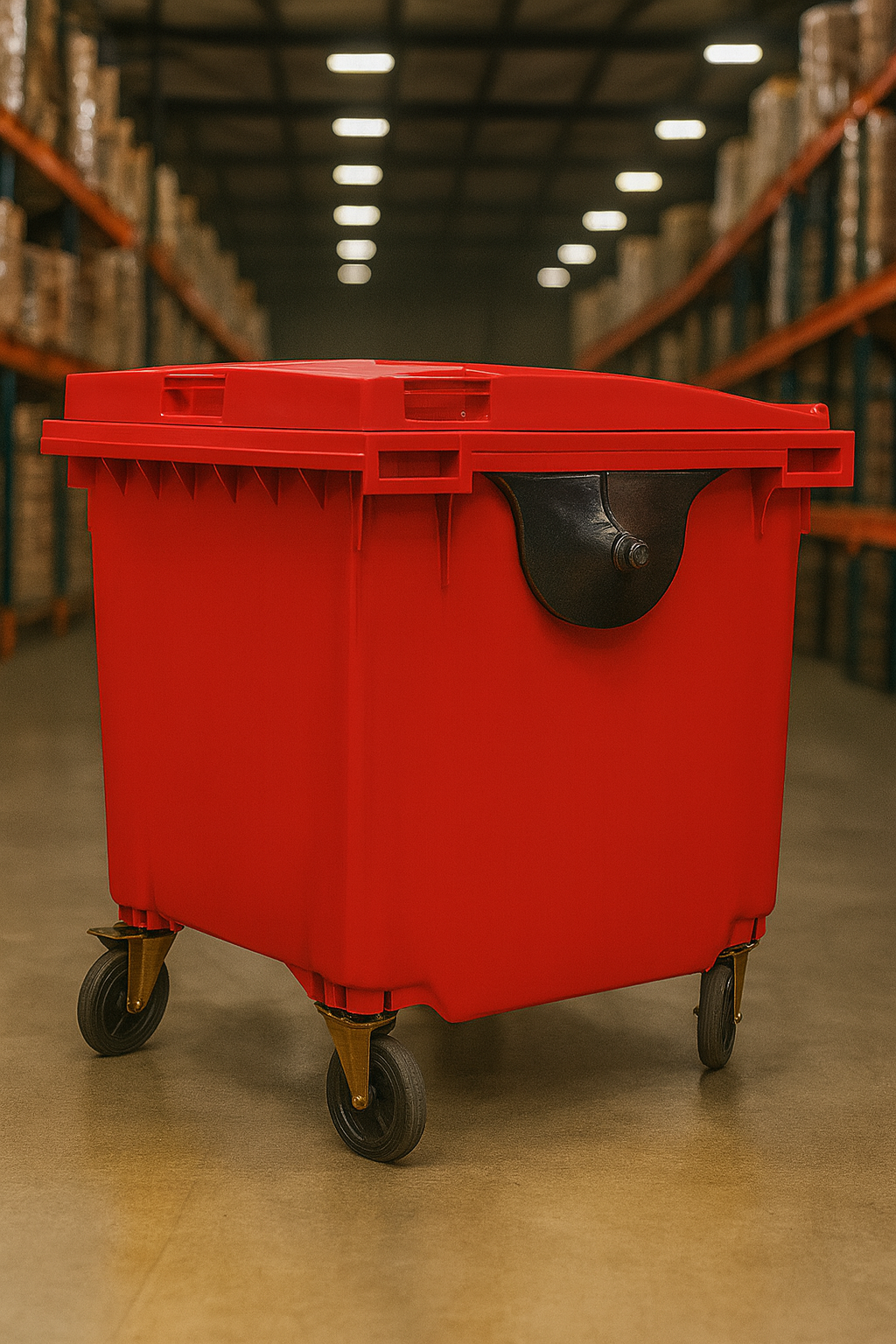 Our bins are made from an injection moulded HDPE plastic, resulting in robust and low-maintenance wheelie bins that will last for many years. All metal parts are zinc-coated and anti-corrosion and the four 200mm solid rubber wheels (which have a 360° swivel range for your convenience) are maintenance-free. Our red 1100 litre wheelie bin is impact, chemical, UV, heat and frost-resistant too.