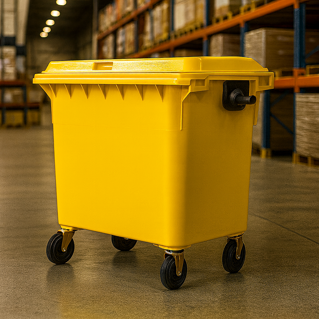 Full yellow 660 litre wheelie bin product specifications can be downloaded in this PDF file.